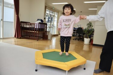 ▽調理見学の日には遊戯室でトランポリン